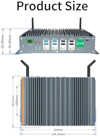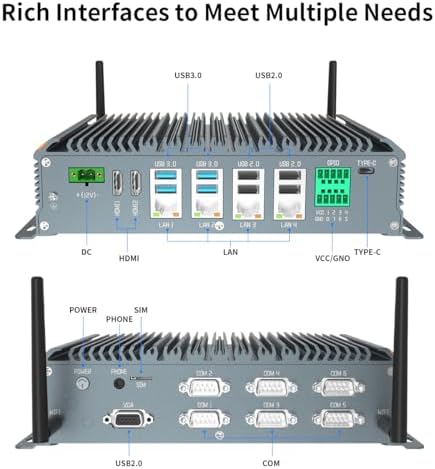 SunKol Fanless Industrial PC Windows 11 Pro Desktop PC, Intel I5-10310U 16GB RAM 512GB SSD, 4xLAN, 4xUSB 3.0, 4xUSB 2.0, 6xCOM, 8xGPIO, Dual HDMI, VGA, Type-C, WiFi, Rugged Mini Computer
