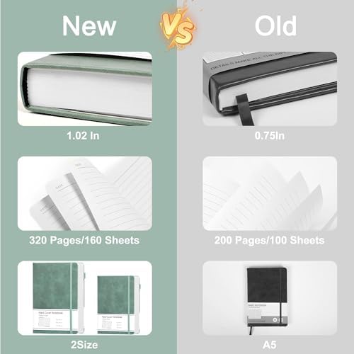 CAGIE Lined Journal Notebook for Women Men 320 Pages 100 Gsm Paper Thick Journaling Notebooks A5 Leather Journals for Writing Hardcover Journal Supplies for Work Note Taking Diary, 5.7x8.3 In, Green