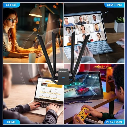NEWFAST AC1300 USB WiFi Adapter (NF- U329), USB3.0 Wireless Dual Band Network Adapter, 2.4GHz\/5GHz USB Wi-Fi Adapter for Desktop PC, MU-MIMO, 4 Antennas, WiFi Dongle for Windows XP\/7\/8\/8.1\/10\/11