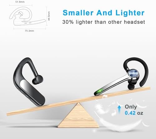 HEIBAS Bluetooth Headset, Wireless Bluetooth Earpiece with 500mAh Charging Case 72 Hours Talking Time Built-in Microphone for iOS Android Cell Phone, V5.1 Hand-Free Headphones for Trucker, Office