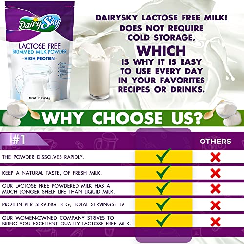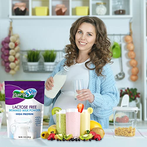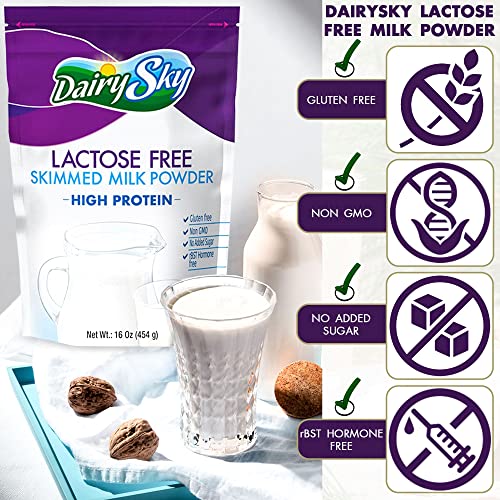 DairySky Lactose Free Milk Powder 16 Oz - Non GMO Fat Free Powdered Milk for Baking & Coffee, Kosher with Protein & Calcium, Great Substitute for Liquid Milk, RBST Hormone - Free - 1 Pack