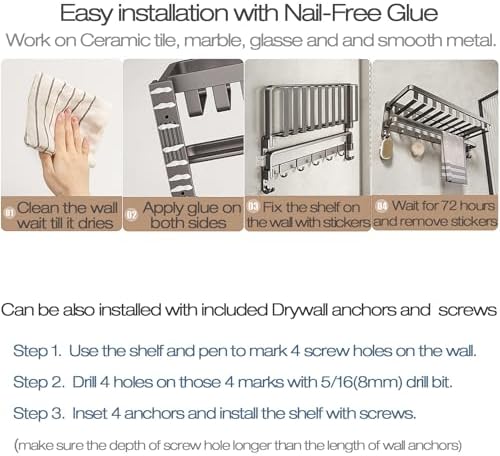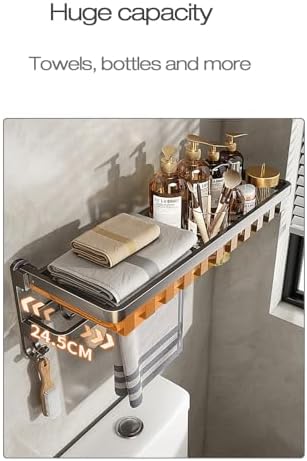 Lancher 24 inches Bathroom Shelf Tower Rack (No Drilling) Shower Rack with Towel Bar with Tower hooks Shower Caddy - Grey