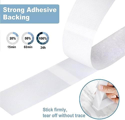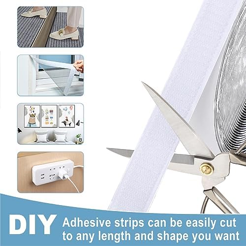 Strips with Adhesive Heavy Duty, 26.5Ft x1.2inch Tape, Nylon Sticky Back Fastener Roll,DIY Industrial Strength Self Adhesive Strips for Office,Classroom,Car, Couch Cushions-White