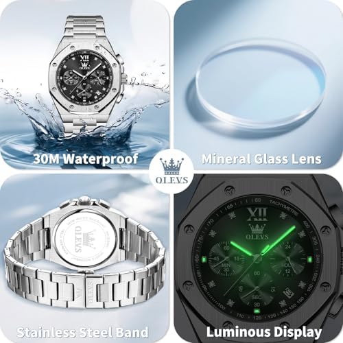 OLEVS Men's Watch Dress Stainless Steel Large Face Waterproof Luxury Men's Watch with Date Casual Blue/Black/Gold/Silver Reloj para Hombre