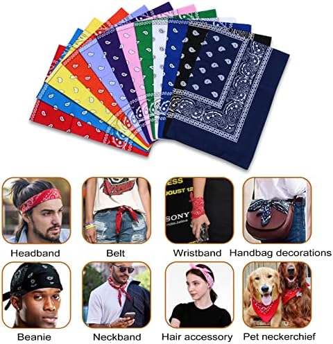 cocopuss 22"X22" Cotton Bandanas for Men & Women Pasiley Cowboy Bandana Handkerchiefs for Hair
