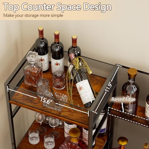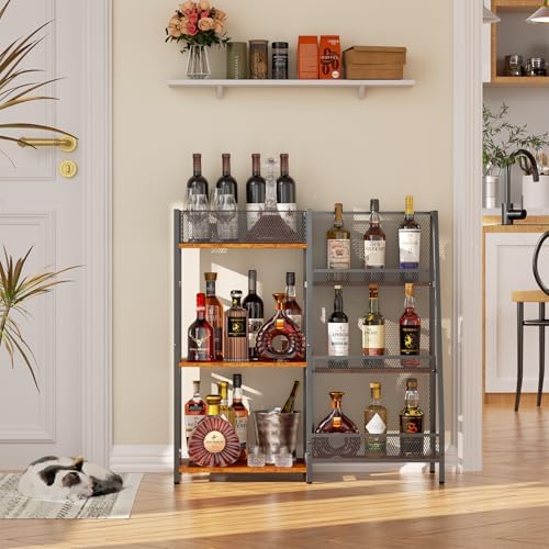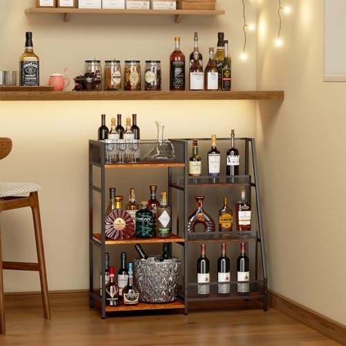 Liquor Stand, 6-Tier Stepped Bar Cabinet Freestanding Floor for Whiskey & Wine Bottles, Versatile Corner Bar Stand with Fences, Mini Liquor Cabinet Perfect for Home Bar or Kitchen