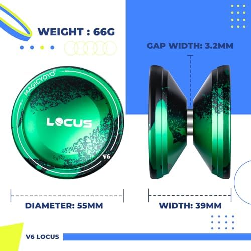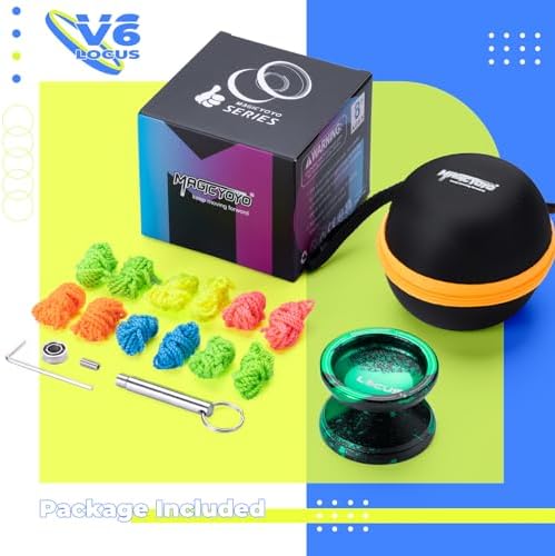 MAGICYOYO V6 LOCUS Pro YoYo - Dual-Mode Responsive\/Unresponsive for Kids & Adults Professional Tricks with 12 Strings Includes Bearing Tool + Storage Case Bag (Sleek Black\/Green)
