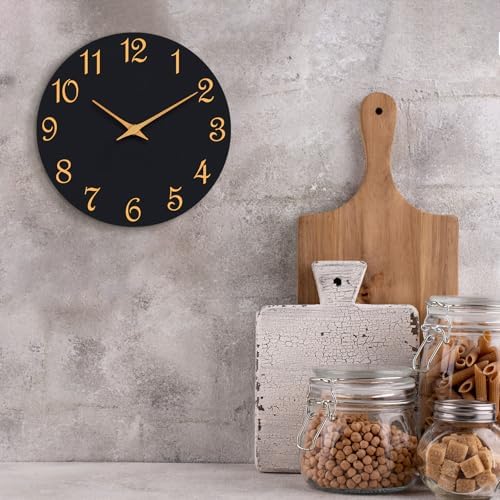 Roymnie Wall Clock, 8 Inch Modern Wall Clocks Battery Operated, Small Silent Non Ticking Clock Decorative for Kitchen, Bathroom, Bedroom, Desk, Bookshelf (Black Gold)