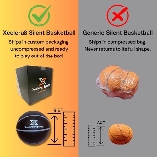 Xcelera8 Sports Silent Basketball Size 7 (29.5\u201D) Grooved Airless Indoor Basketball Quiet Dribbling Indoor Training Dribble Dream Silent Soundless Basket Ball Upgraded - Better Grip and Bounce