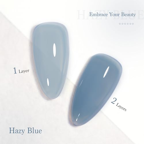 GAOY Jelly Nude Blue Gel Nail Polish, 16ml Sheer Neutral Translucent Soak Off Gel Polish, UV Light Cure for Nail Art DIY, 1722 Hazy Blue