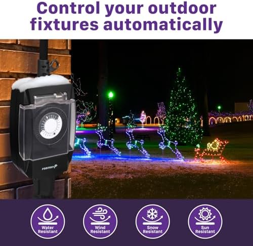 Fosmon Outdoor Light Timer Outlet Waterproof, 24 Hour Plug in Mechanical Pool Pump Timer Weatherproof, 3-Prong, Grounded, Heavy Duty, 15A 1\/2HP