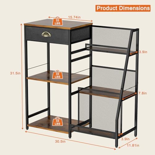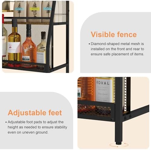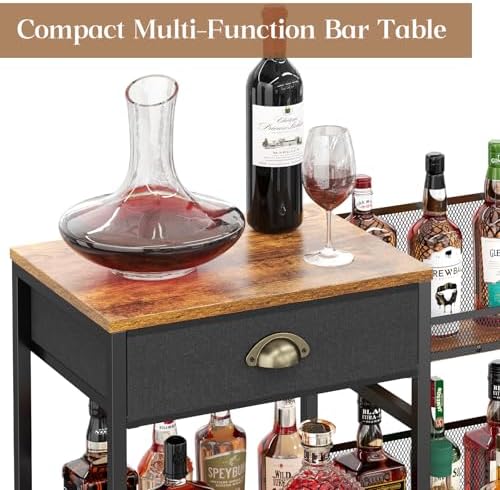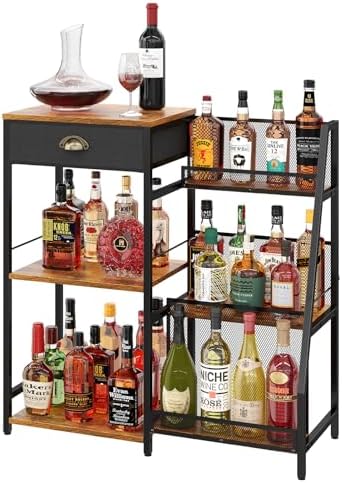 Jakyitvi Liquor Cabinet Bar for Home with Drawer, 3-Tier Wine Rack Freestanding Floor and Wine Shelf with Step Design for Whiskey, Spirits, Vintage Mini Bar for Kitchen Apartment