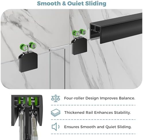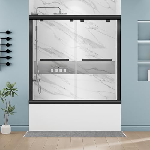 DELAVIN 56-60 in.W x 59 in.H Semi-Frameless Double Sliding Tub Shower Doors, Water Repellent Bypass Black Tub Door, SGCC Clear Tempered Bathtub Doors with Explosion-Proof Film
