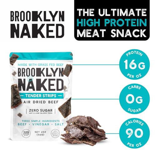Brooklyn Naked Tender Strips - (8 oz, Pack of 2) \u2013 Chewy Air Dried Grass Fed Protein Snacks \u2013 Sugar Free Beef Jerky Alternative \u2013 Organic Beef Snacks \u2013 Whole 30 Approved Foods, AIP