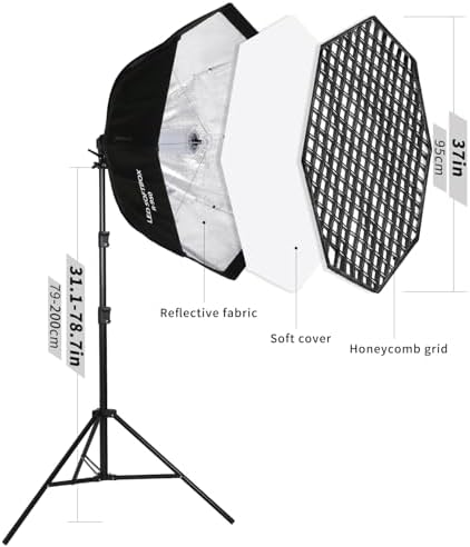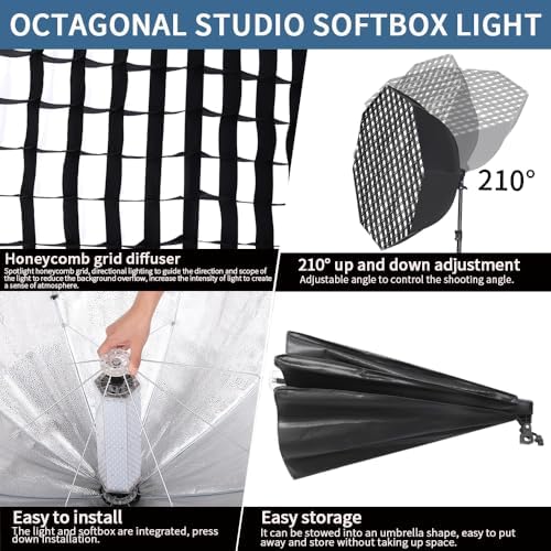 GSKAIWEN 110W Octagonal Parabolic Softbox Lighting Kit, 37.4 "\/95cm Soft Box with Honeycomb Grid\/Remote Control\/Stand for Studio Light, Video Recording, Portraits, Product Photography, Live Str