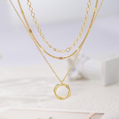 Picuzzy Layered Gold Necklaces for Women, Stackable Dainty 14K Real Gold Plated\/Silver Chain Necklace Layering Beach Cute Fashion Pendant Choker Necklaces Trendy Jewelry Set Gifts for Women Teen Girl