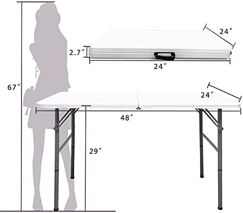 Gocamptoo Folding Table,4ft Indoor Outdoor Heavy Duty Portable Folding Square Plastic Dining Table w\/Handle, Lock for Picnic, Party, Camping (4 FT) \u2026