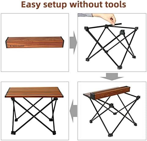 ROCK CLOUD Portable Camping Table Ultralight Aluminum Folding Beach Table Camp for Camping Hiking Backpacking Outdoor Picnic, Wood Grain