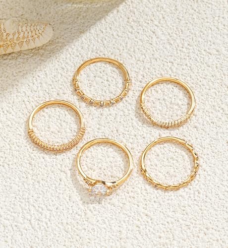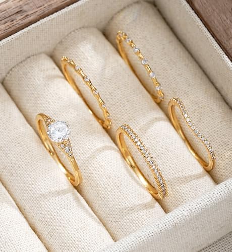 iF YOU Gold Rings for Women Non Tarnish, Dainty 14K Gold Plated Stackable Cubic Zirconia Knuckle Ring Set, Trendy Statement Promise Wedding Bands Stacking Engagement Rings Size 6 7 8 9 10