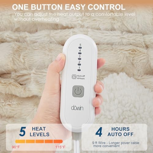 Dowin 加热盖毯,扎染人造毛皮电热毯 127 厘米 x 152.4 厘米,带 5 个快速加热级别和 4 小时自动关闭,ETL&FCC 认证加热投掷,家庭办公室使用(米色)