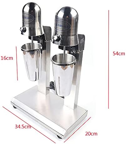 Gdrasuya10 110V Dual Head Milk Shaker, 560W Commercial Stainless Steel Double Head Drink Mixer Machine Smoothie Malt Blender Soft Cream Mixer Blender With Measuring Cups, 2 Adjustable Speed