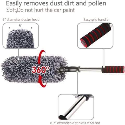 upra Ultimate Car Duster Kit,Best Microfiber Multipurpose Duster,Interior &Exterior Cleaning Tools,Dashboard Detailing Brush,Scratch Lint Free,Pollen Removing,extendable Handle,Tuck,SUV,RV,Set of