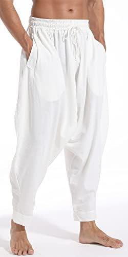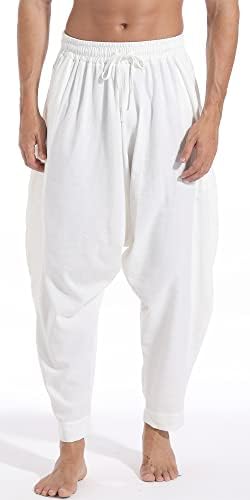 AITFINEISM Men's Drawstring Aladdin Hippie Harem Pants Loose Drop Crotch Trousers