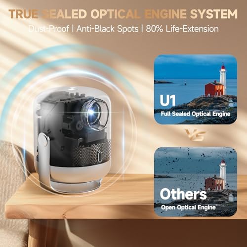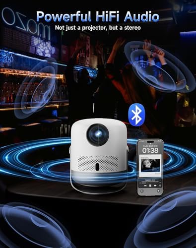 400ANSI Home Projector, WiFi 6 and Bluetooth, with Speaker 4K Decoding and 1080P Output One-Touch Focus 360° Rotation Portable Projector, Compatible with IPhone\/Android\/TV stick