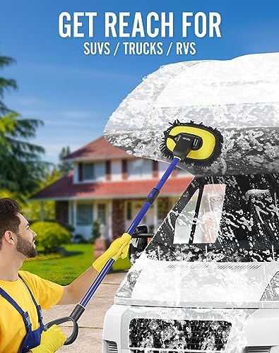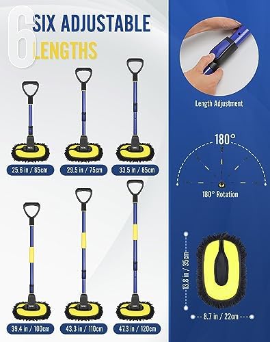 SEG Direct Car Wash Brush Mop Kit Extendable with Long Handle, Detachable Pole, D Shaped Grip, Chenille Scratch-Free Replacement Head, Cleaning Dusters Towels, for Car RV Truck Washing Detailing