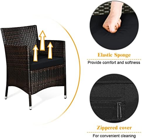 Goplus 4-Piece Rattan Patio Set, Outdoor\/Indoor Wicker Conversation Set for Pool, Backyard, Lawn, Wicker Chairs and Sofa with Soft Cushion, Rattan Furniture with Tempered Glass Coffee Table