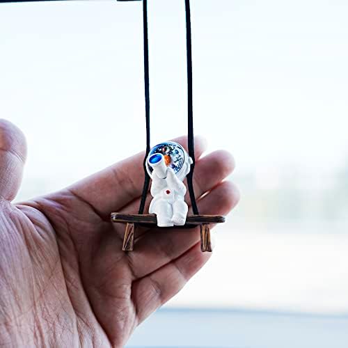 AMIORO Swinging Astronaut Car Decor Accessories Cartoon Car Rear View Mirror Hanging Ornaments (White)