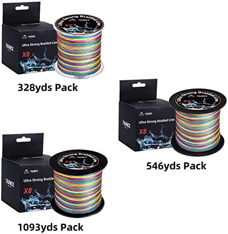 RUNCL 8 Strands Braided Fishing Line - High Visibility Colored Braid Line, Super Strong, Abrasion Resistant, No Stretch, 328yds\/546yds\/1093yds, 12lb to 100lb for Saltwater or Freshwater Fishing
