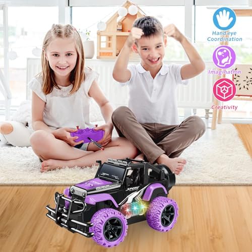 Bloolilies Rc Car, 1:20 Scale Remote Control Car for Girls with Colorful 3D Lights Off Road Rc Monster Truck Toy Vehicles for Kids Boys Toddlers 3 4 5 6 7 8-12 Years Old Birthday Gift, Purple