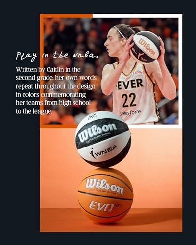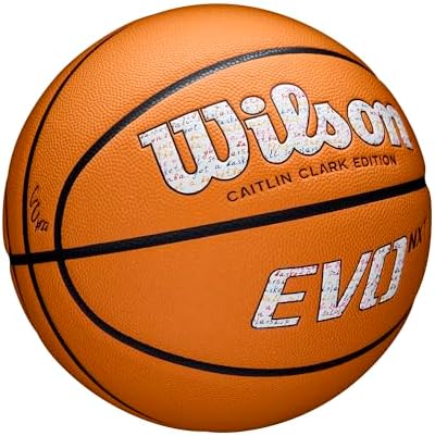 Wilson Caitlin Clark EVO NXT 3951 Game Basketball - Orange, Size 6 - 28.5" "GET A BASKETBALL SCHOLARSHIP. PLAY IN THE WNBA.": Written by Caitlin to herself in second grade, the dream that drove her to the league echoes across the design in colors from teams she played for from high school to the WNBA. MICRO-TOUCH COMPOSITE LEATHER: The Micro-Touch Cover uses an extra layer of texture on the pebbled cover to create double-layered grip that channels away moisture. SUPER SOFT CORE: Extra cushioning allows your fingers to dig deeper into the surface for better control and a softer feel, helping every player find the shooters touch. COMPOSITE PEBBLED CHANNELS: Composite channels are pebbled instead of smooth, creating a consistent texture over the entire surface of the ball for unparalleled control.
