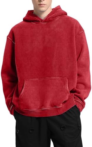 FAIBLE Men's Hoodie Oversized Unisex Pickled Hoodie Heavyweight Wool Retro Cotton Sportswear Men's and Women's Streetwear