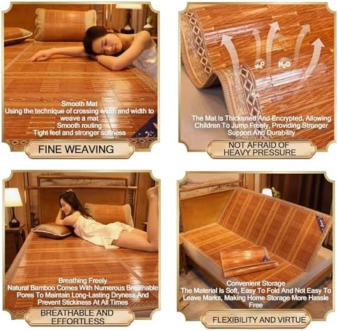 Bamboo Sleeping Mat Foldable Summer Sleeping Mats Bamboo Mat Cooling Sleeping Mattress Smooth and Breathable for Bed, Sofa, Dorm(150x195cm\/59x77in)