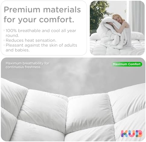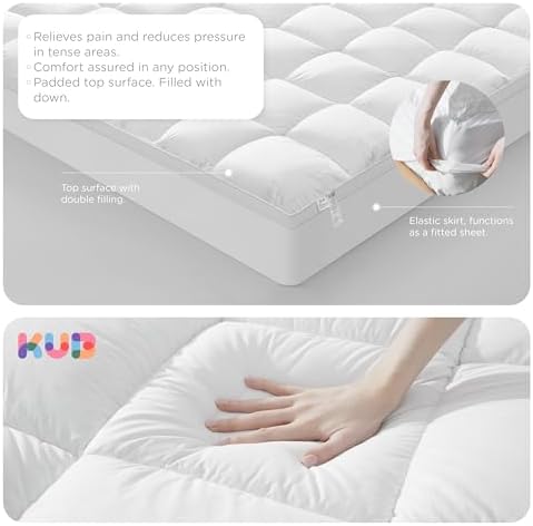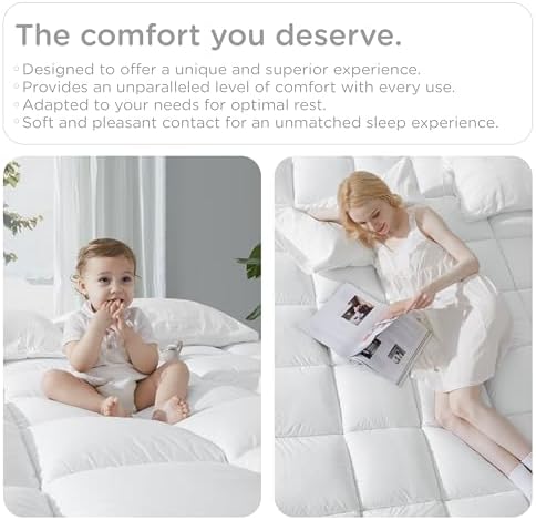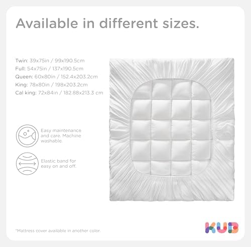KUB Cotton Mattress Topper, Queen, Cooling Cotton Pillow Top with 8-21 Inch Deep Pocket, 3D Snow Down Alternative Fill, Breathable Fluffy Mattress Pad Cover (White, Queen 80 * 60inch)