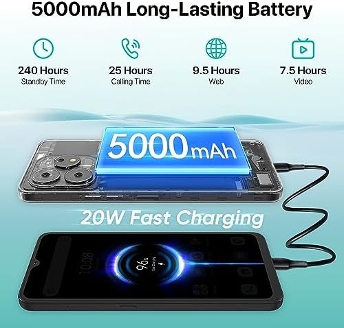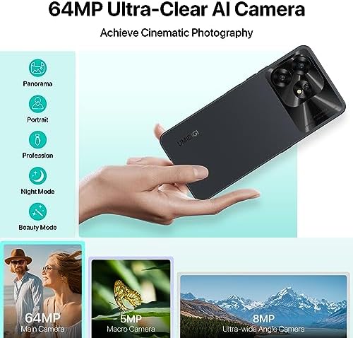UMIDIGI A15 Cell Phones 16(8+8)G+256G, Android 13 Mobile Phone, 64MP Main Camera Octa Core Smartphone Unlocked 6.7\u201D HD+ Full-View Waterdrop Screen, 5000mAh Battery 20W Fast Charging, 4G Dual SIM,