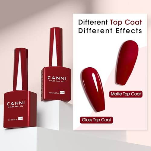CANNI Red Gel Polish - Deep Dark Red Color, High Gloss Soak Off UV Gel Nail Polish for French Nail Manicure Salon DIY