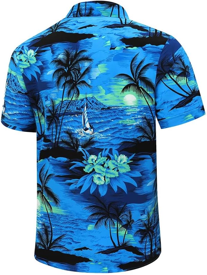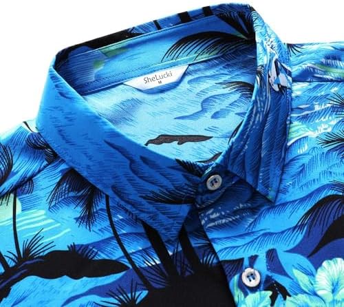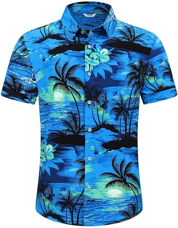 SheLucki Hawaiian men's shirt, unisex summer beach casual short sleeved button up shirt, printed palm colored clothing