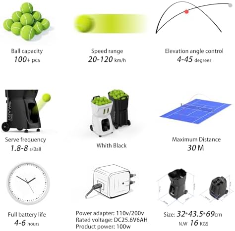 PUSUN PT-SAMRT PRO-Internal Spin Tennis Ball Machine - Smart App Control - 100+ Ball Capacity - Professional Training Equipment - Realistic Ball Trajectory Simulation - 4-6 Hour Battery Life