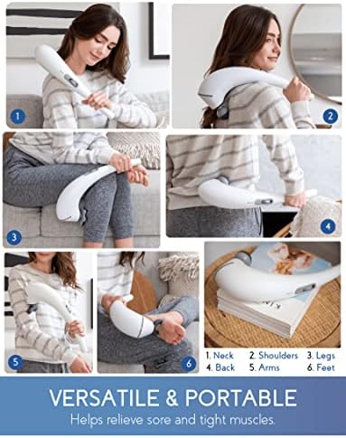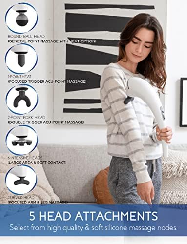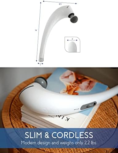 Zyllion Handheld Back and Neck Massager - Cordless Rechargeable Electric Vibrating Deep Tissue Massage with Heat for Athletes, Recovery and Muscle Pain Relief - White (ZMA-27-WT)