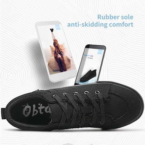 Obtaom Women's White Play Fashion Sneakers Cute Lace up Canvas Shoes Low Top Washed Canvas Flat for Lady
