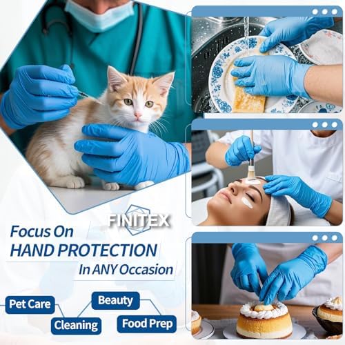 FINITEX Blue Disposable Nitrile Exam Gloves - 200 PCS\/BOX 3.5mil Rubber Powder-Free Latex-Free Medical Cleaning Food Gloves