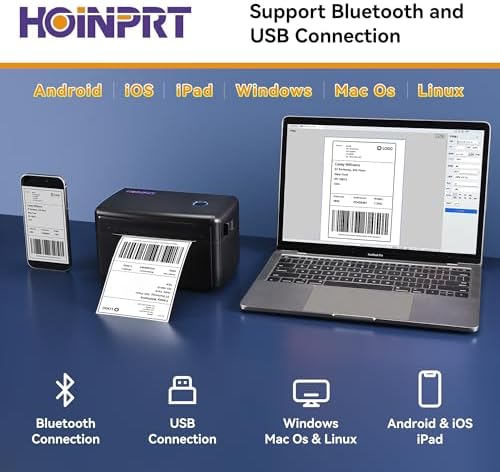 HOINPRT Thermal Label Printer 4x6 \u2013 High-Speed Shipping Label Maker for Small Business \u2013 Inkless, Portable Sticker Printer \u2013 Compatible with Amazon, USPS, Etsy, Windows, iOS, Android (B