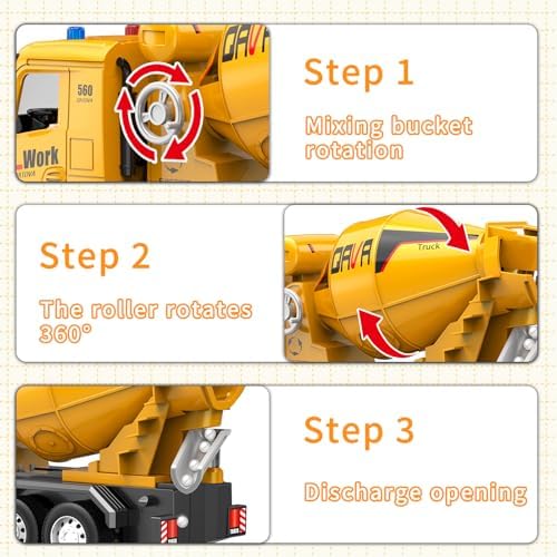 MQDMINI Cement Mixer Toy Truck - Children's Remote Control Truck, Toy Cement Mixer Rechargable Hydraulic Car for 6 7 8 9 Year Old Boys Girls, Educational Toys Birthday Gifts for Kids