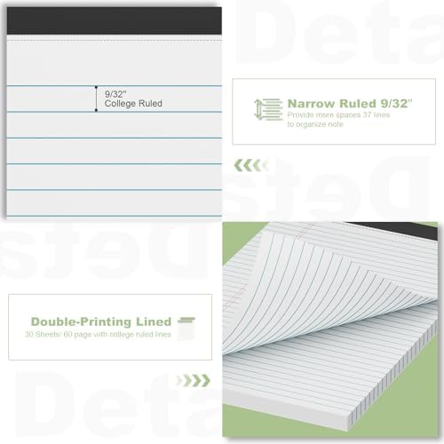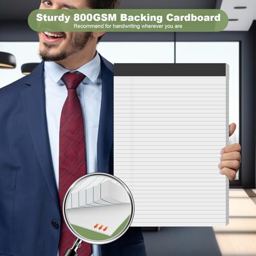 White Legal Pads 8.5 x 11 Narrow Ruled, 3 Pack Notepads College Ruled Pads of Paper With Sturdy Back 37 Lines 70 GSM Paper, Writing Note Pads 30 Sheets Per Writing Pad for Taking Notes, Reminders