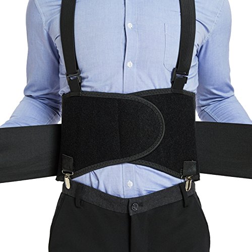 NeoTech Care Lumbar Brace with Removable Pants Clips & Detachable Suspenders - Back Support Belt - Adjustable, Light, Breathable - Shoulder Holsters - Work, Posture (Black, Size M)