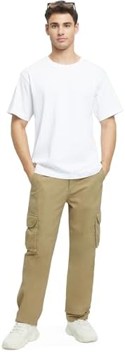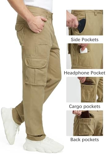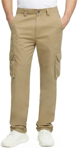 JAWERU men's work pants with multiple pockets, classic cotton casual work, hiking, and slim fit twill cotton pants