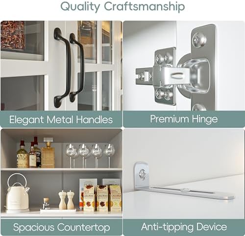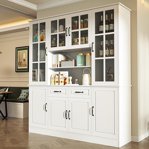 MU Kitchen Storage Cabinet with Glass Doors, Large China Hutch with 2 Drawers & 5 Adjustable Shelves, Kitchen Pantry Hutch for Home Office, Living Room, White (15.8" D x 63" W x 70.9H)